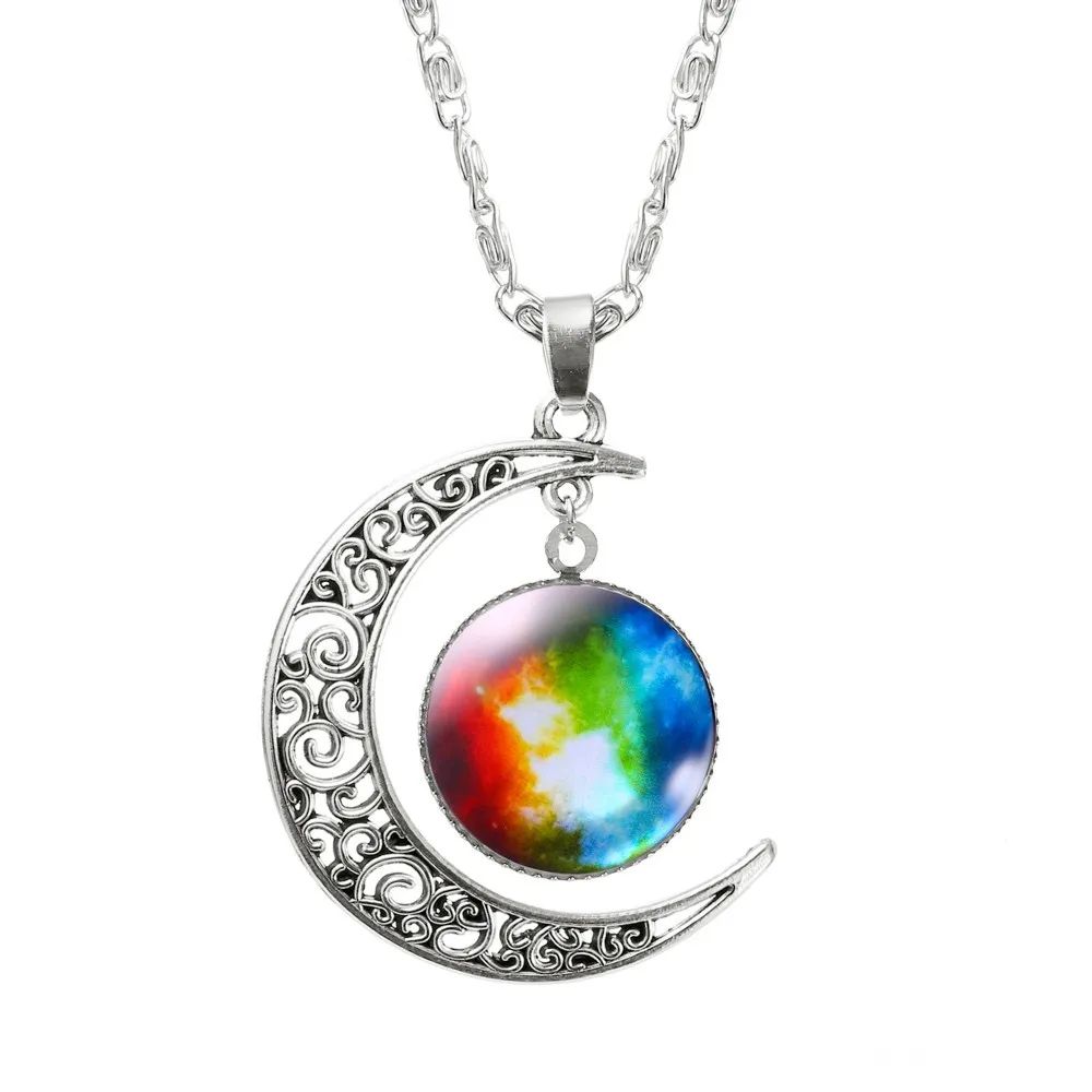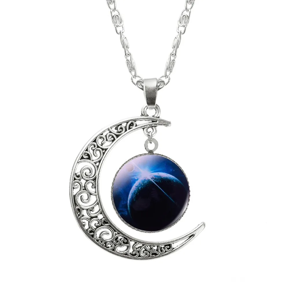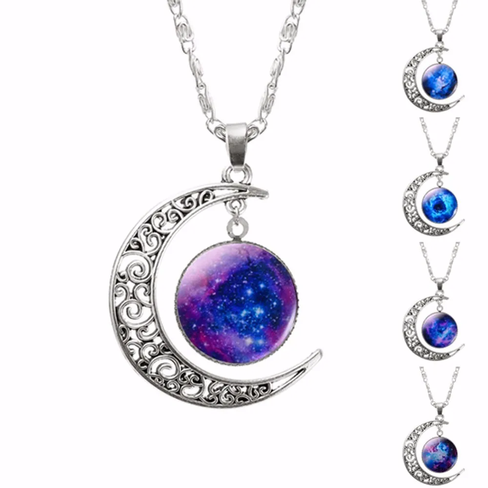 1 Pcs Hollow Moon & Glass Galaxy Statement Necklaces Silver Chain Pendants 2016 New Fashion Jewelry Collares Friend Best Gifts