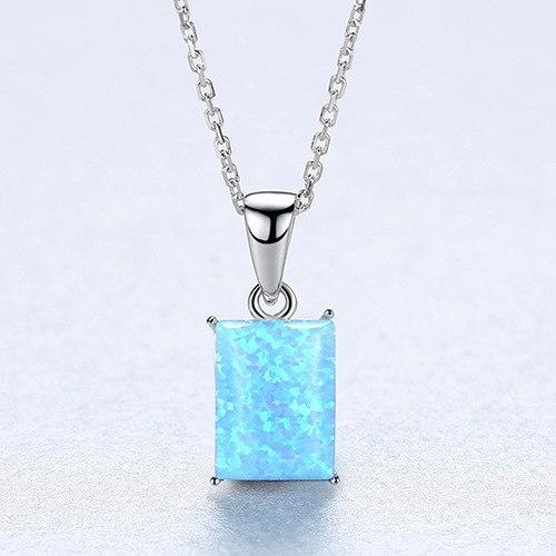 100% 925 Sterling Silver Classic Square Blue Opal Necklace Zirconia Pendants Necklaces Best Gift For Women