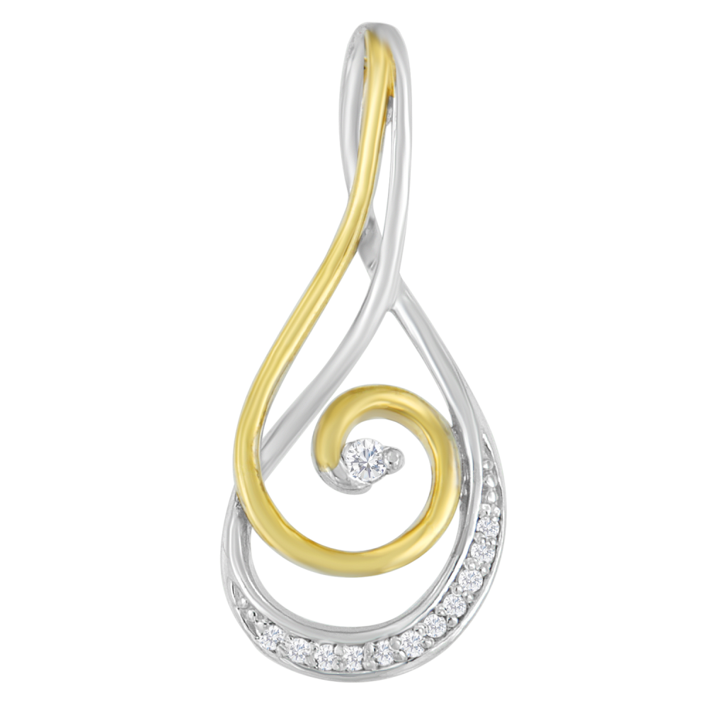 Cascading down to create two elegant spirals, each curve of this exquisite pendant is lined with glittering diamonds. Crafted in a high shine white and yellow gold finish, it's a unique style sure to make her stand out.