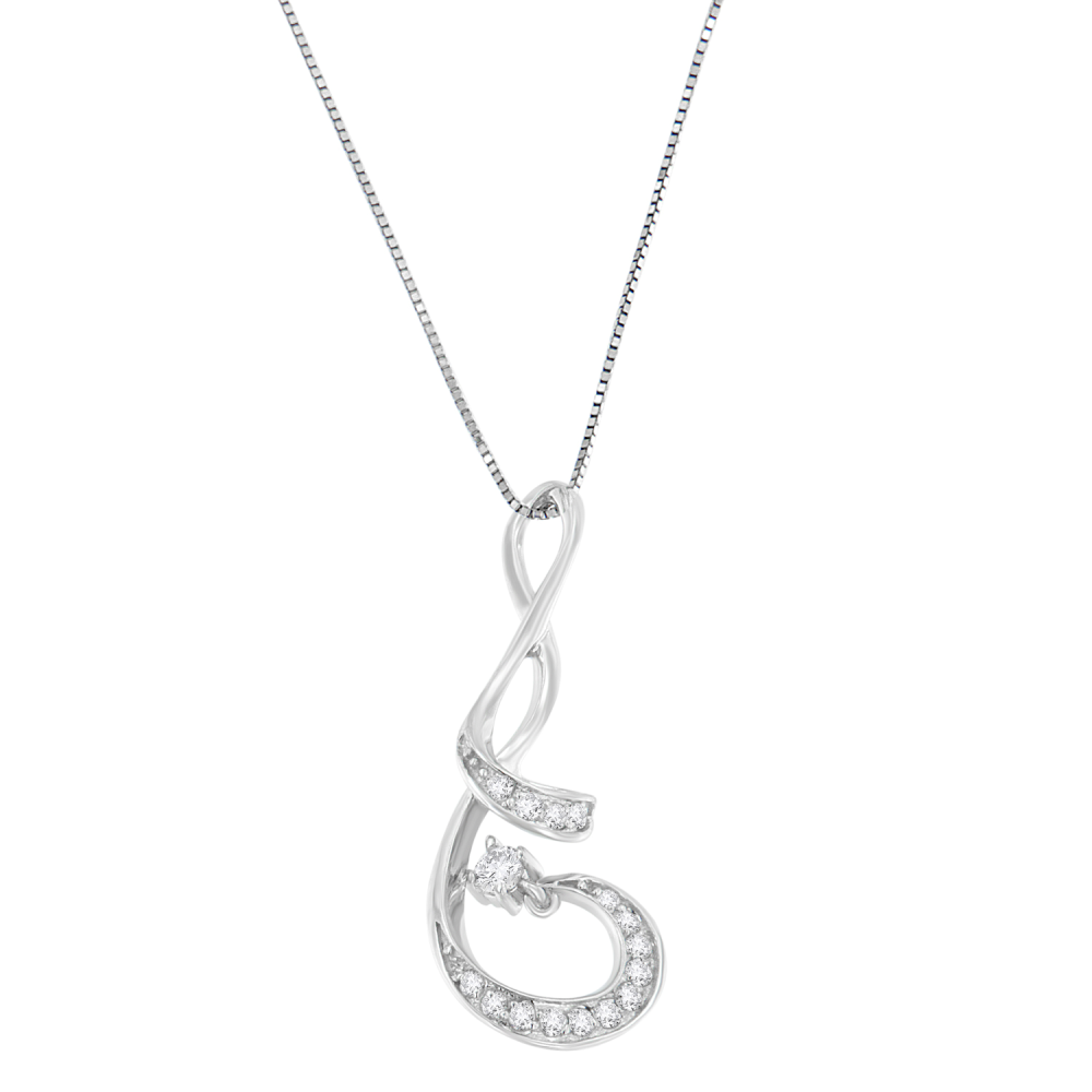 Cascading down in an elegant spiral, each curve of this exquisite pendant is lined with glittering diamonds. Crafted in a high shine white gold finish, it's a unique style sure to make her stand out.