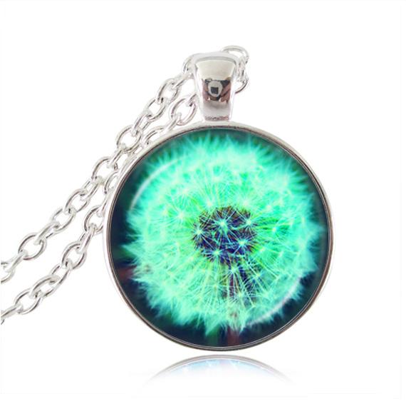 2017 Limited Real Collier Collares Pendant Necklace Dandelion Plated Chain Necklaces Glass Cabochon Natural Plant Jewelry HZ1