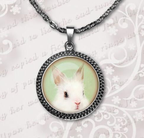 2017 New Limited Trendy Women Collares Collier Necklace Rabbit Pendant Bunny Necklace Cute Animal Jewelry Glass Dome Pendant HZ1