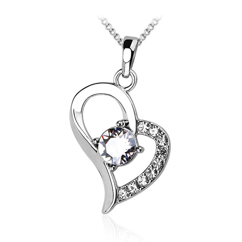 "The One" 18K White Gold Plated Heart Pendant Necklace with Chain. Crystal Gifts for Women