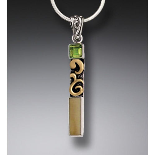 "Totem" Ancient Fossilized Walrus Ivory Tusk, Peridot Sterling Silver and 14kt Gold Filled Pendant