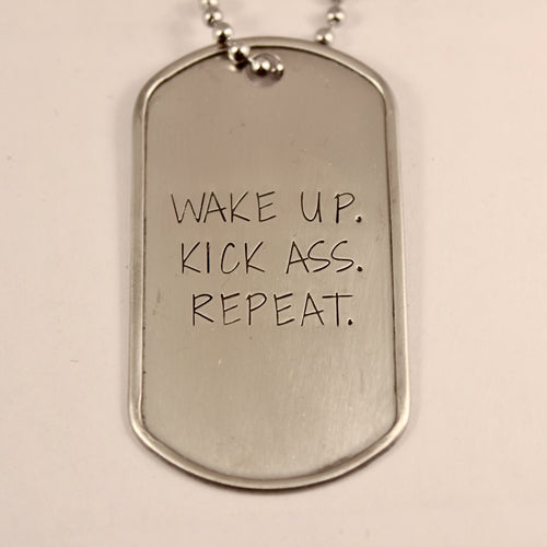 "WAKE UP. KICK ASS. REPEAT." Dog Tag Necklace - READY TO SHIP