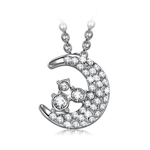 "Luna" Star Moon Design Necklace, Women Pendant with Swarovski Crystal. Jewelry Gift for Wife Girlfriend on Anniversary Day