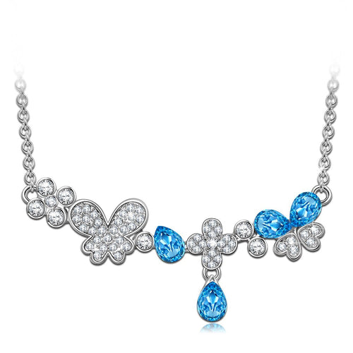 "Morpho Helena" Butterfly Pendant Necklace, Made with Swarovski Crystals, Clover Women Jewelry
