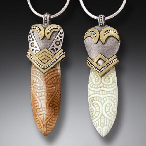 "Maori Spear" Ancient Fossilized Mammoth Tusk Silver Pendant